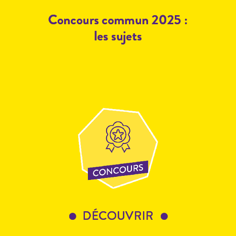 26 avril 2025 | Concours commun 2025 : les sujets Les sujets des épreuves du concours commun organisé le samedi 26 avril 2025 sont publiés ici, au fur et à mesure du déroulement des épreuves, dans le respect des délais légaux (règlement du concours).